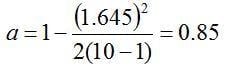 and the sample size, n=10, into equation 4 yields: