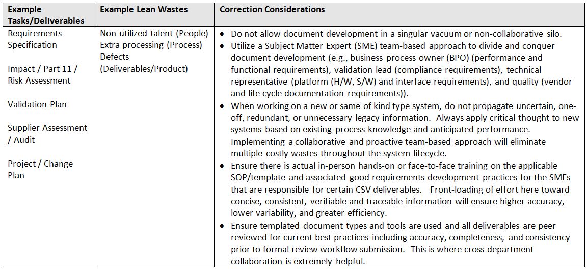 Building onto a previous post, Lean CSV - How to Reduce Waste and Increase Value, today's blog focuses on specific lean considerations within the first phase of the Computer System Validation (CSV) lifecycle.