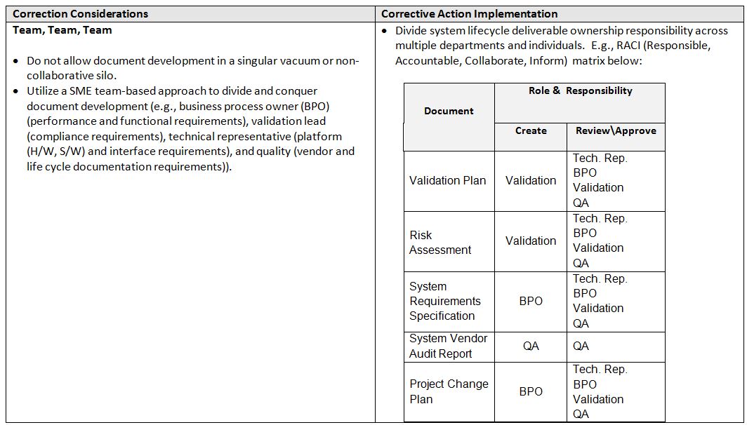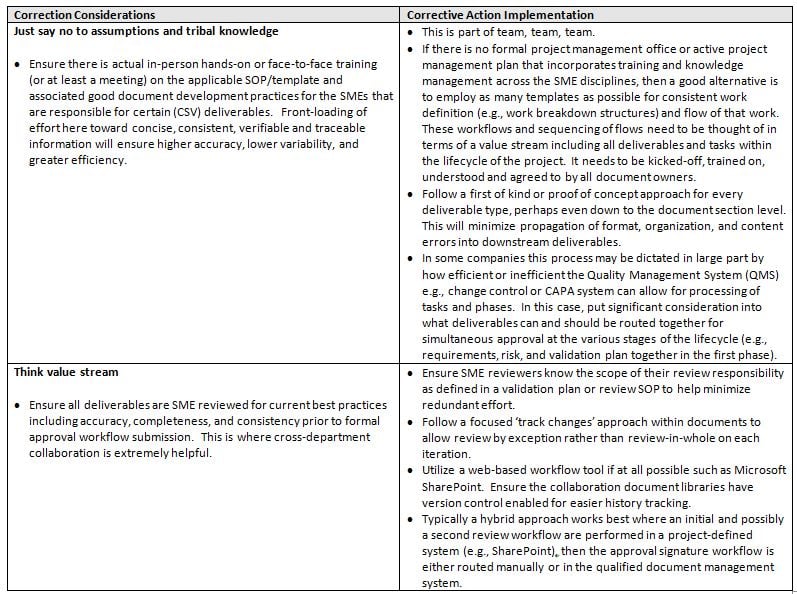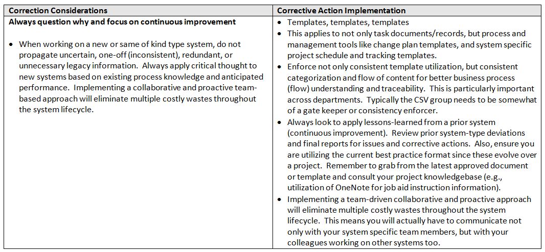 So these are all legitimate considerations, but what are some realistic corrective action implementation practices? Here are some examples: