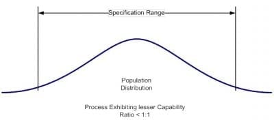 Capability is usually expressed as the ratio of the specification range or tolerance for the measured characteristic to the observed variation associated with the characteristic. Larger ratios indicate a more capable process while smaller ratios indicate a less capable process. The capabilities of two different processes are depicted in Figure 1.